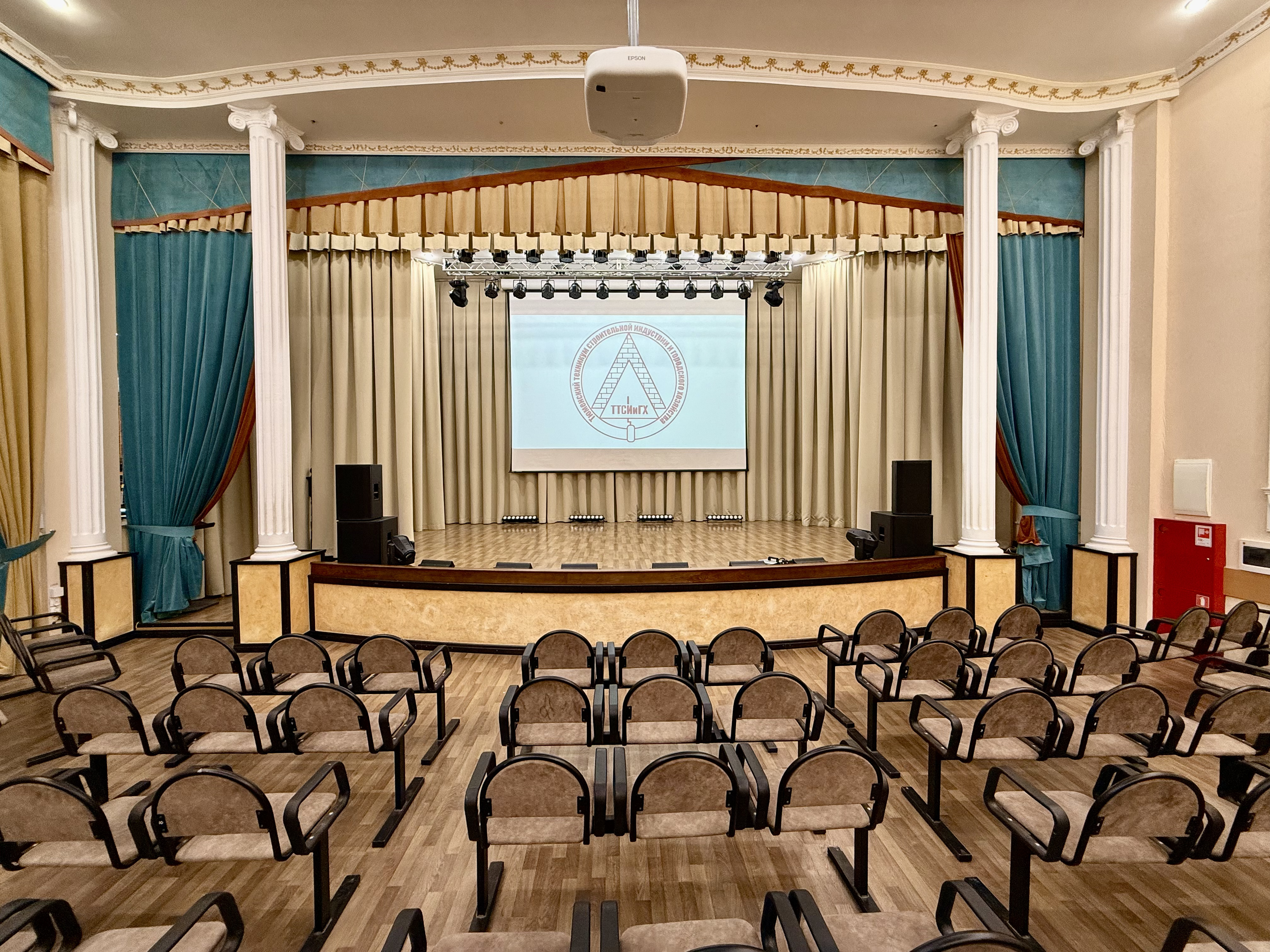 Для развития творческих способностей наших обучающихся в актовом зале созданы комфортные условия для занятий вокалом, организацией внеклассных тематических мероприятий. В техникуме имеется полный комплект музыкальных инструментов и современной аппаратуры.